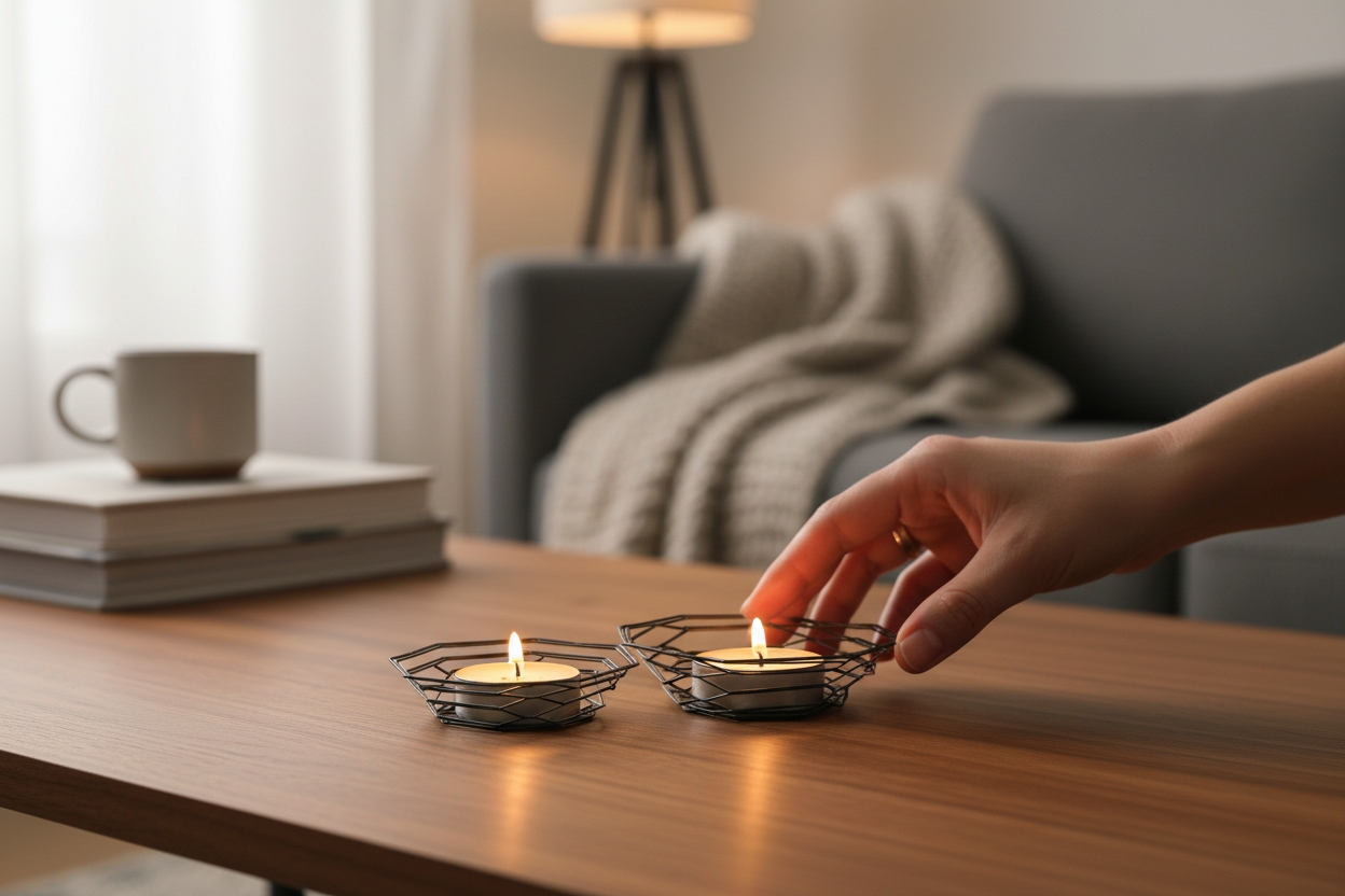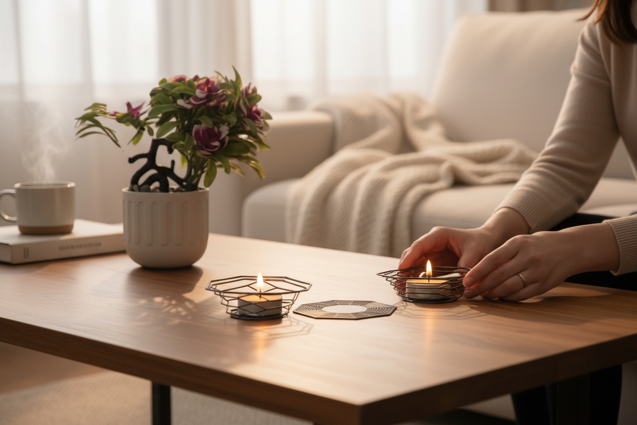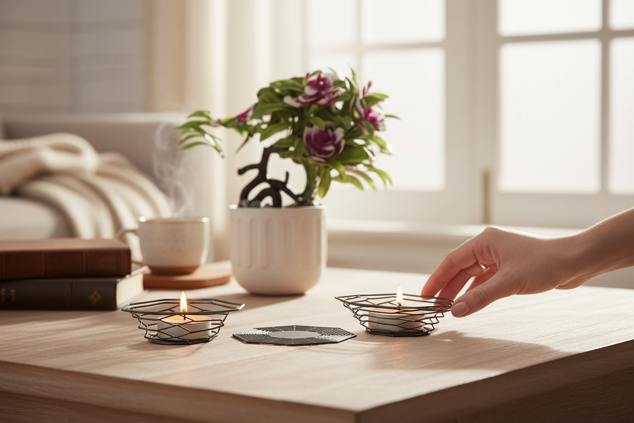 - Üçlü set halinde sunulan bu dekoratif mumluk takımı, evinizin atmosferini zenginleştirir.