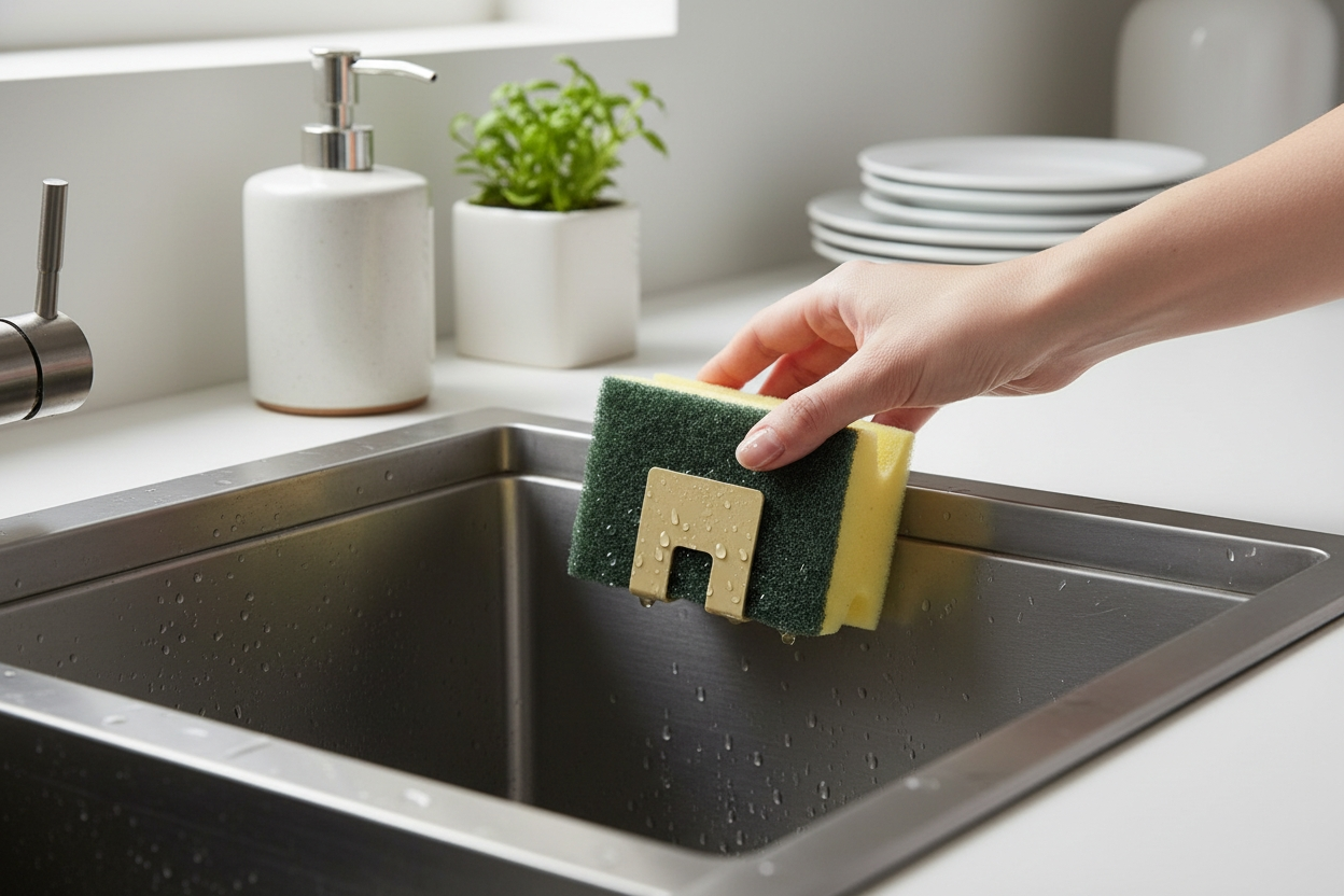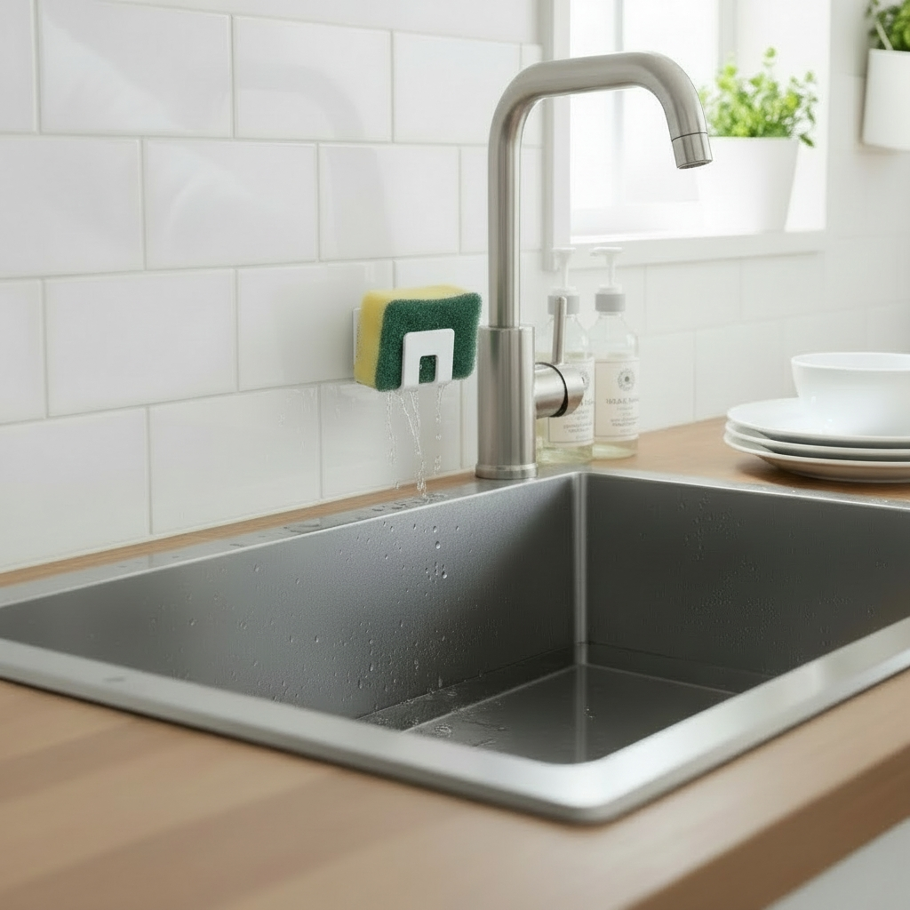 Mutfağınızda sünger ve temizlik bezlerinden kaynaklanan dağınıklığa pratik bir çözüm! Bulaşık Süngeri Tutacağı & Evye Düzenleyici, süngerlerinizi hijyenik, düzenli ve her zaman elinizin altında tutmanız için tasarlanmıştır.